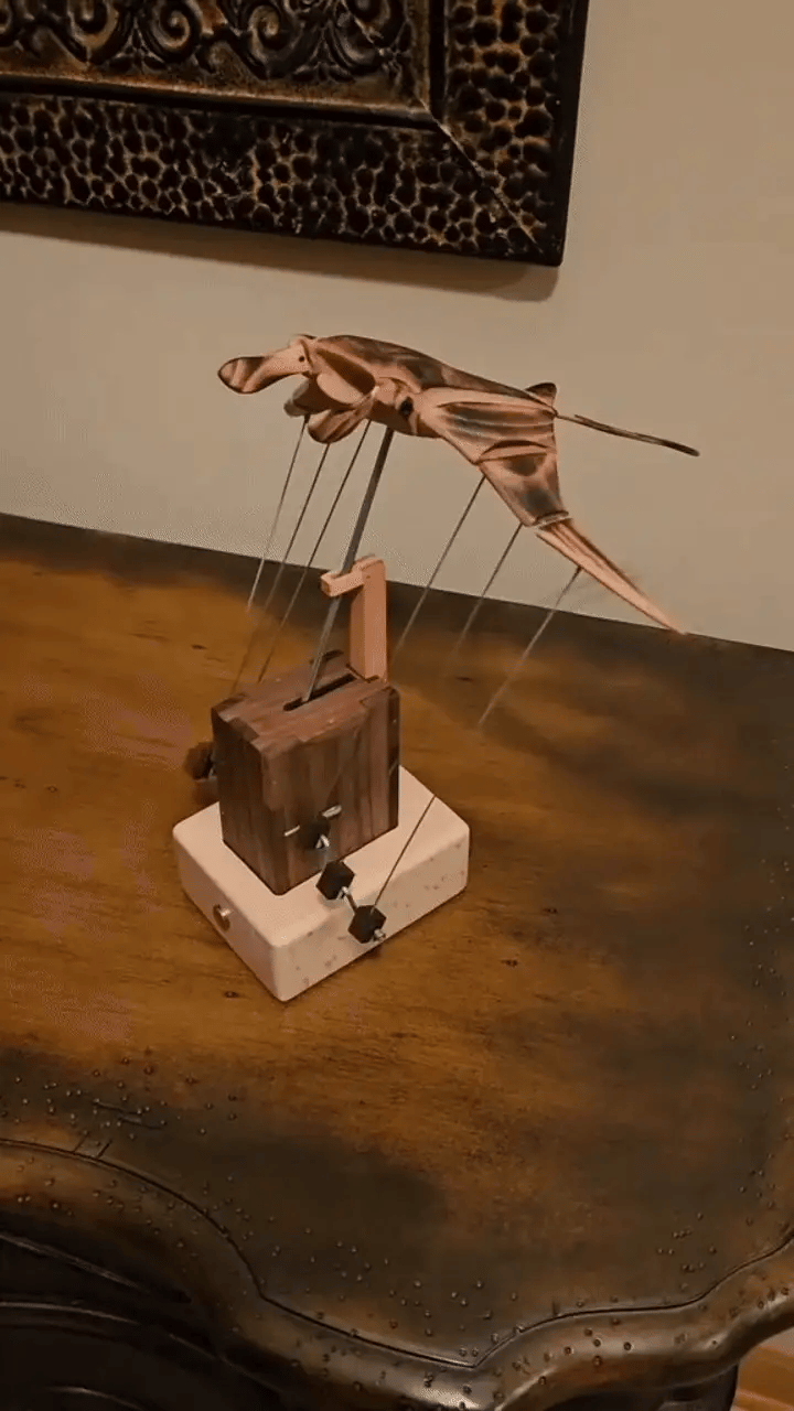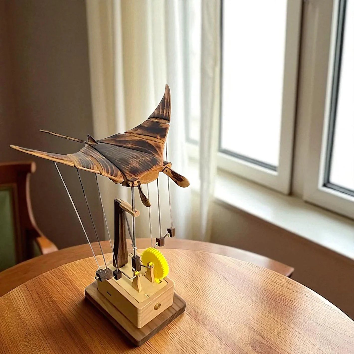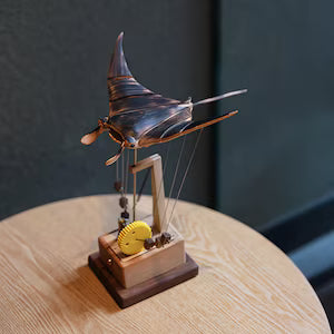 Thanks to a precise biomimetic mechanism, the wings flow slowly and naturally, letting you admire the sculpture’s soothing motion.